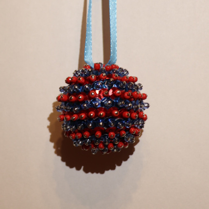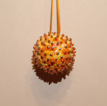 Material: Styropor, Pailletten, Perlen und Nadeln.