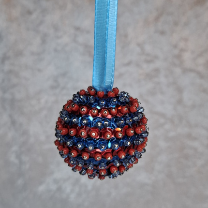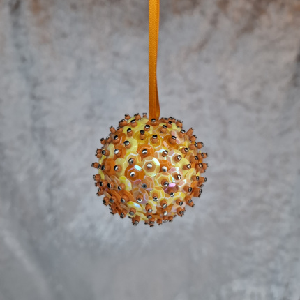 Material: Styropor, Pailletten, Perlen und Nadeln.